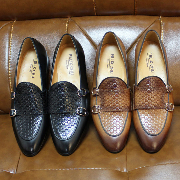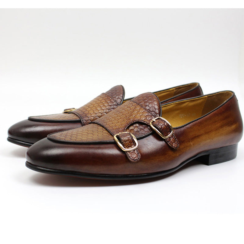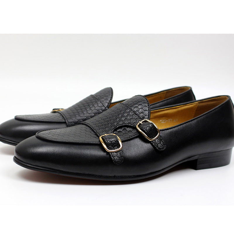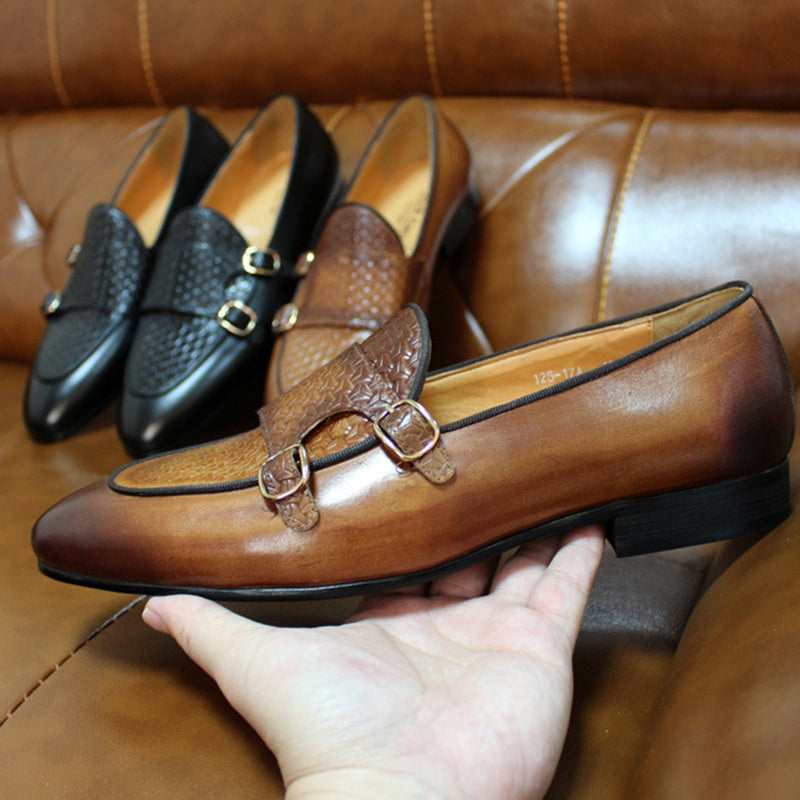 Mocassins pour hommes en cuir noir et marron avec sangle moine pour chaussures habillées pour hommes pour fête de mariage