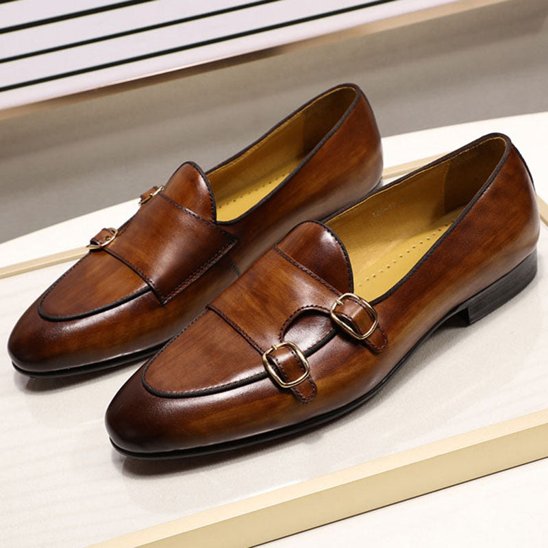 Mocassins habillés pour hommes d'été et d'automne en cuir véritable peints à la main avec sangle de moine pour hommes DS0706