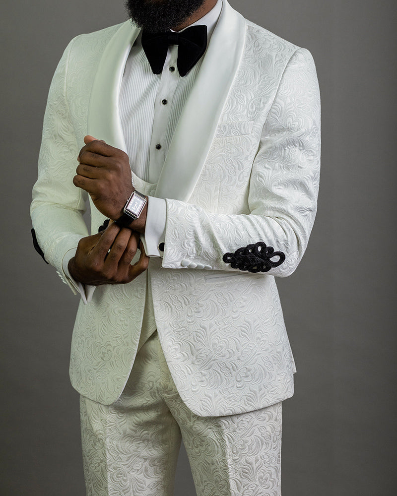 CB1241 Jacquard Hommes Ivoire Costumes de marié Smokings 2 pièces