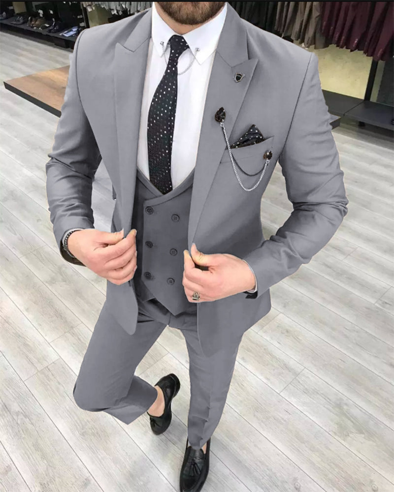 Costume de mariage classique 3 pièces gris à revers pointus pour marié et garçons d'honneur (veste + pantalon + gilet) CB2924