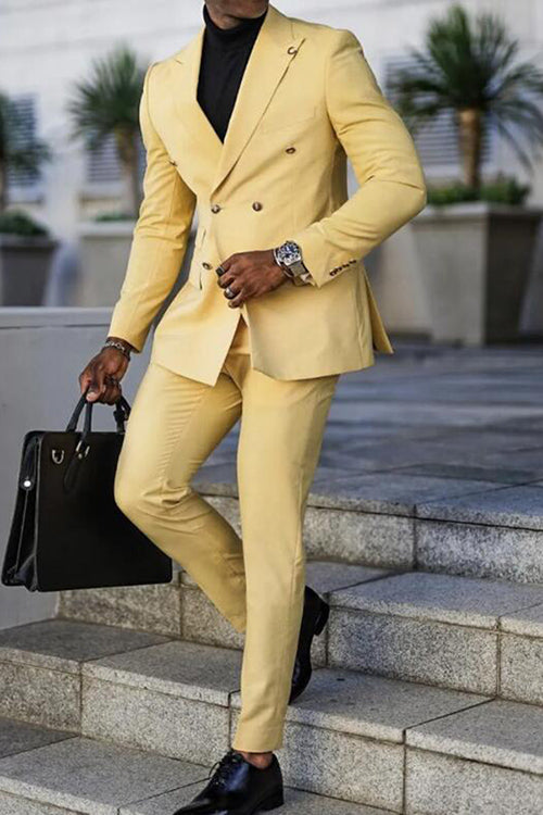 Costumes de bal jaune clair à double boutonnage pour hommes Tenues de remise de diplôme 2 pièces CS4320