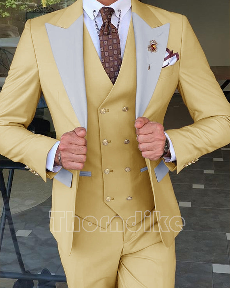 Costume de soirée smoking jaune 3 pièces tendance CB35142
