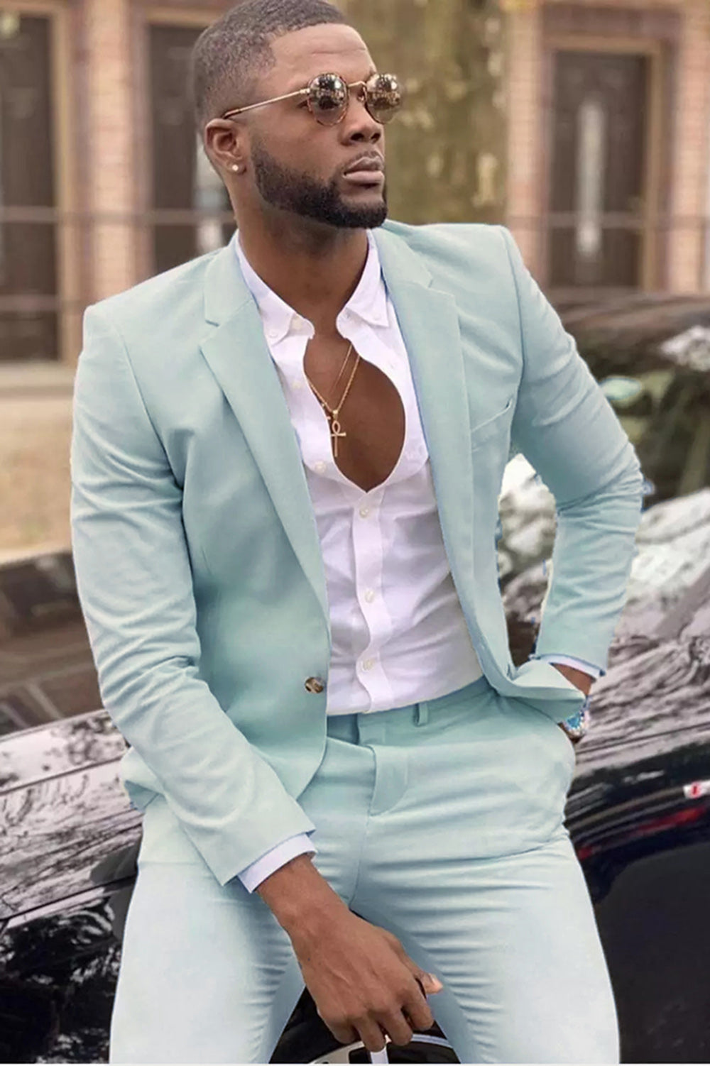 Costumes de garçons d'honneur bleus Haint Costumes de mariage bleu clair pour hommes 2022 Tenues 2 pièces CB2289