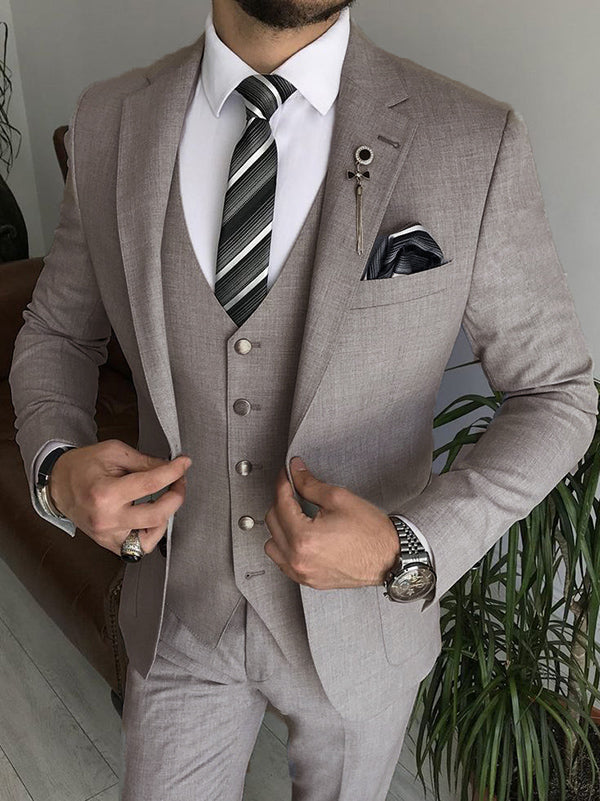 Costume italien slim fit marron pour homme avec poche latérale 3 pièces pour mariage CS43142
