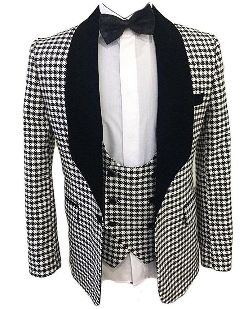 Ensemble de costumes 3 pièces pour hommes avec blazer à pois et pied-de-poule