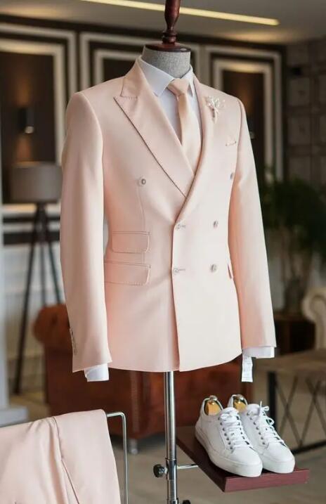 Costume 2 pièces rouge vermillon orange à double boutonnage de style nouveau pour bal/mariage CB1214
