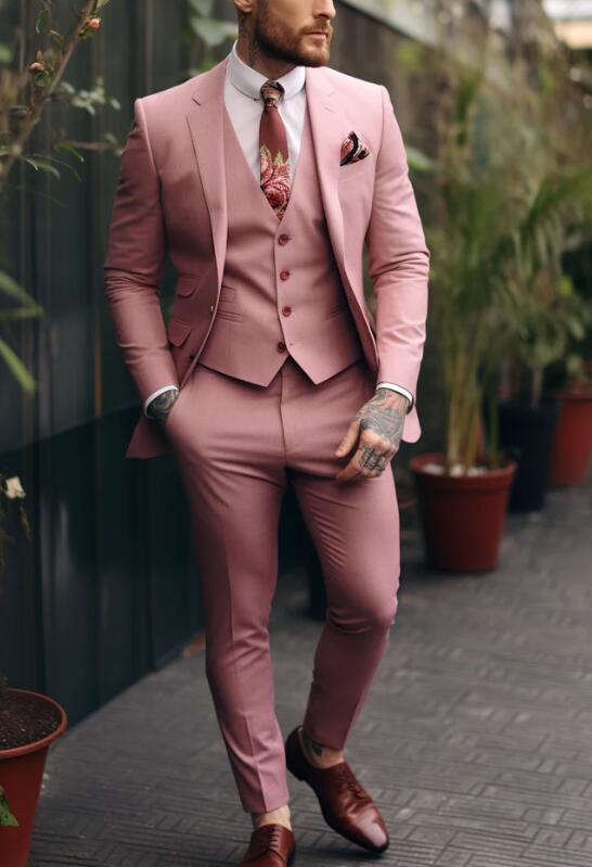 Rose Rose Printemps Mariage Marié Porter Garçons D'honneur Costumes 3 Pièces Veste + gilet + pantalon CB2415