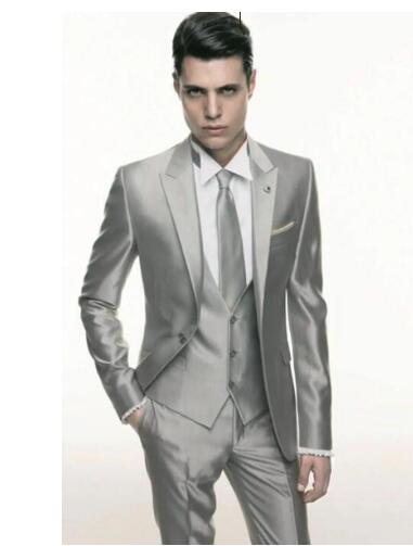 Costumes argentés brillants pour hommes 3 pièces en satin tenues de soirée CB2435
