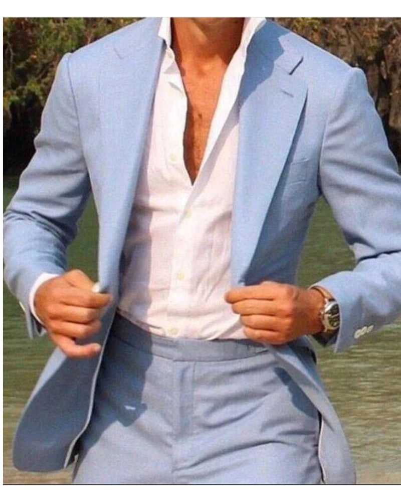Costume d'été décontracté bleu ciel pour homme, blazer, tenue de soirée, deux pièces, veste de dîner + pantalon CB3525