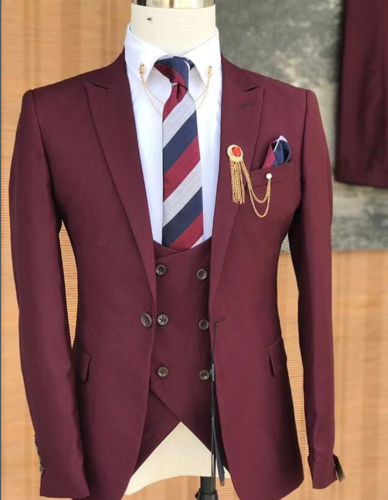 Costumes de marié bordeaux coupe slim pour hommes, tenues de mariage 3 pièces CS46292