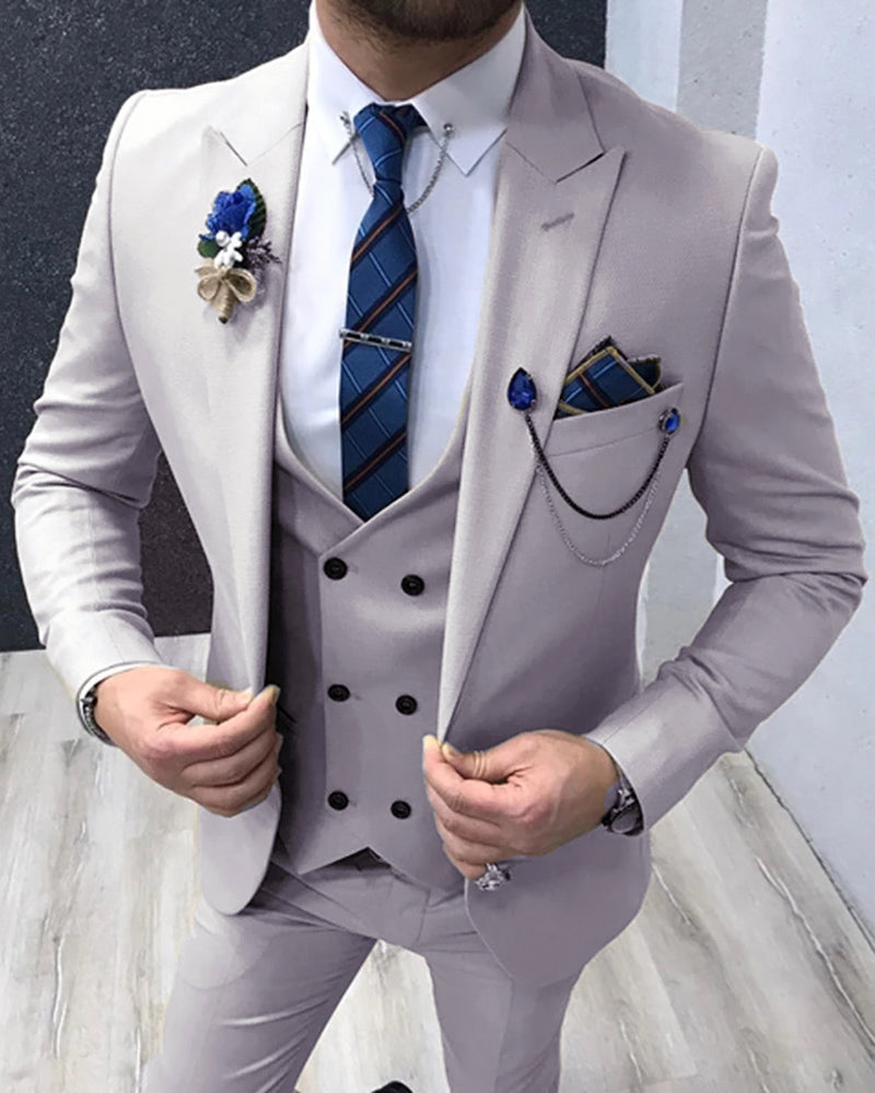 Costume 3 pièces gris clair pâle pour homme avec revers en pointe Sunnier, tenue de soirée de mariage CB2715