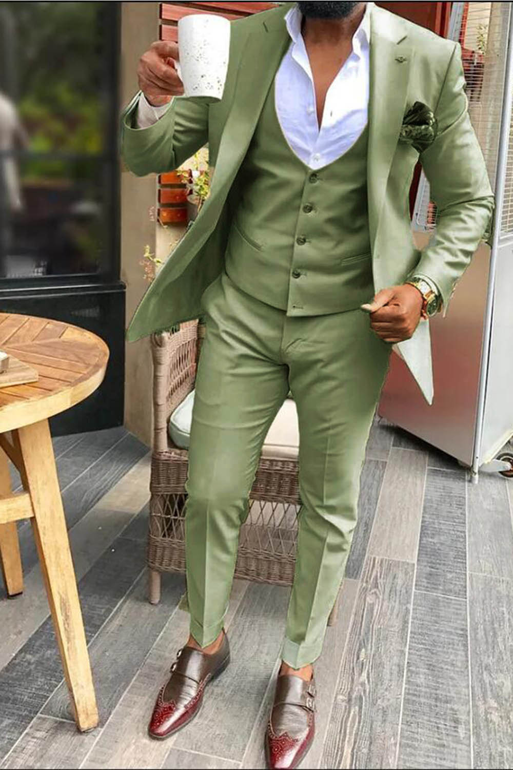 Costume trois pièces tendance pour homme, coupe slim, vert olive, pour mariage, CS4111
