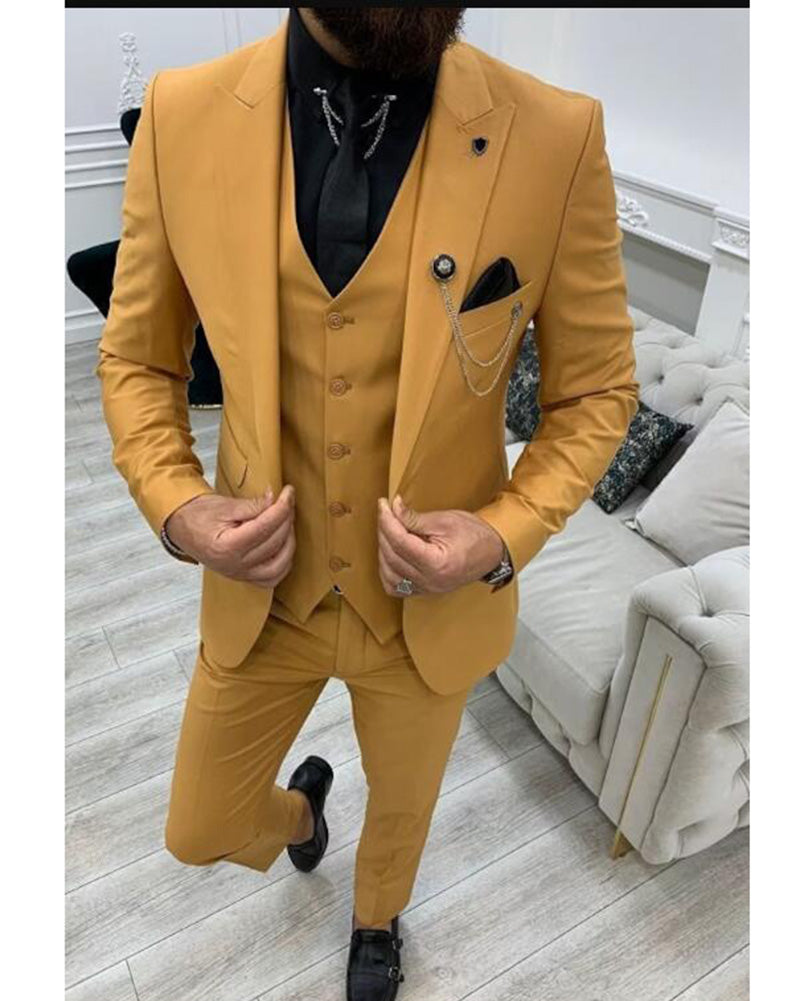 Costumes de garçons d'honneur jaunes 3 pièces, costumes de bal pour hommes CB35151