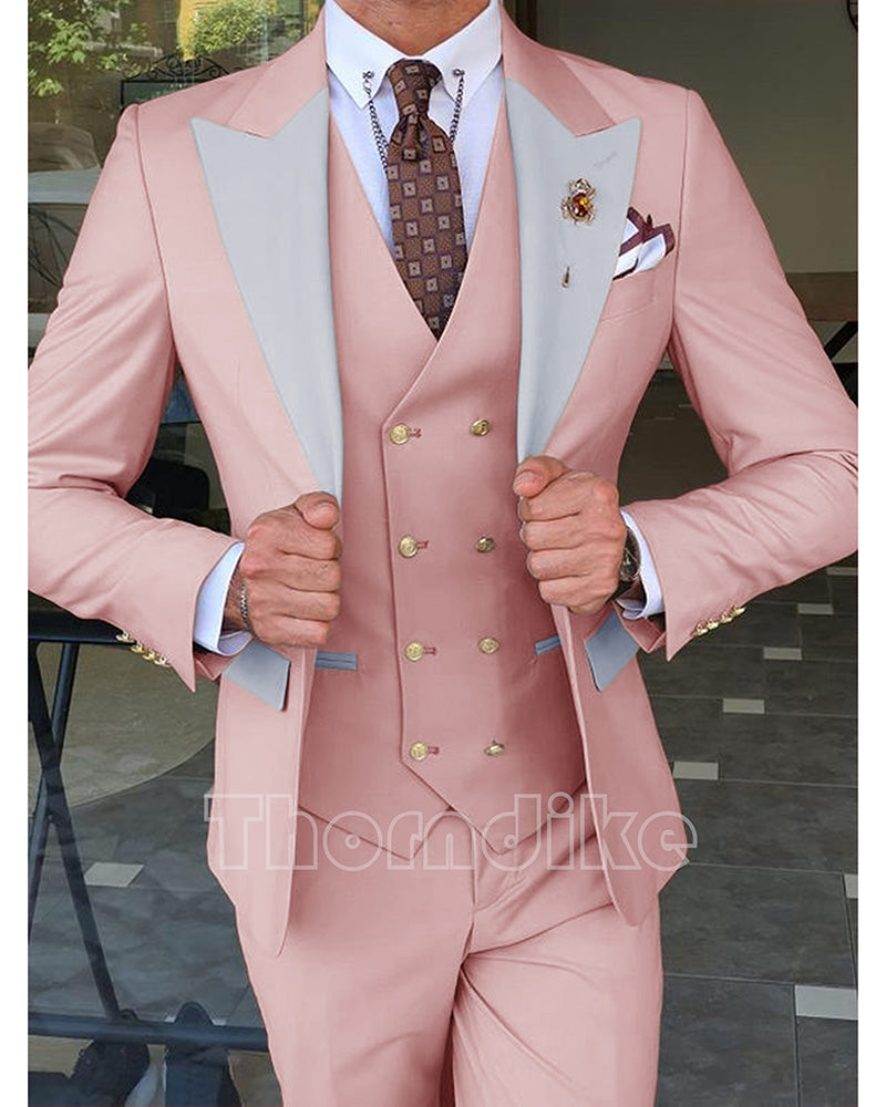 Smoking de bal rose et argent pour hommes trois pièces garçons d'honneur mariage hommes tenues costumes CB23351