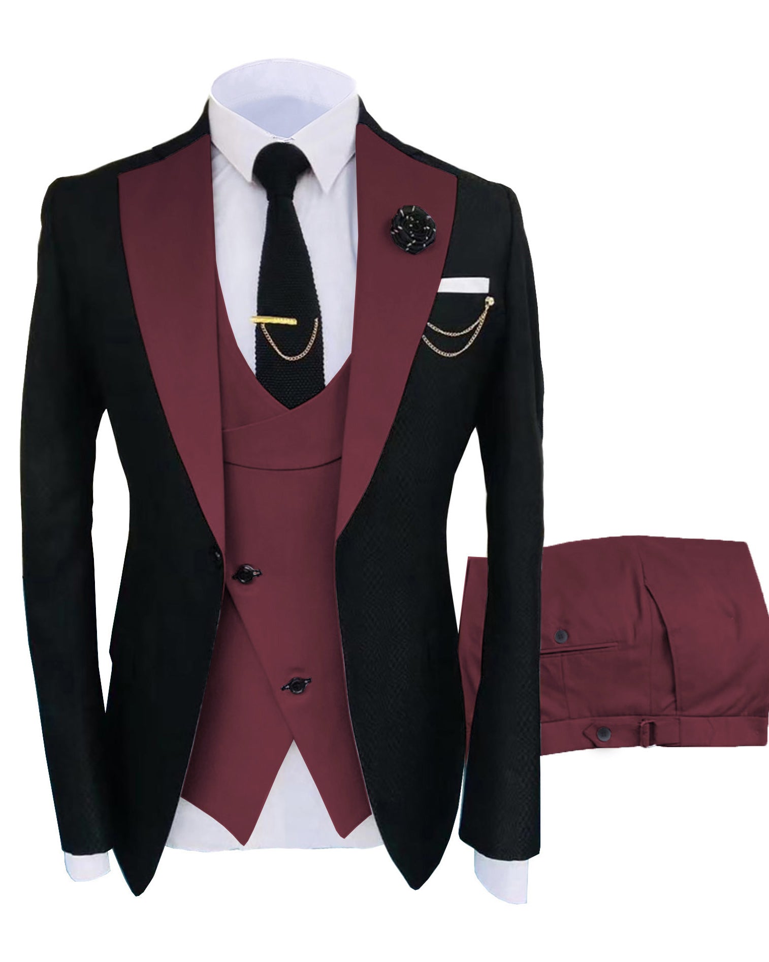 Black and Burgundy Wedding Suits 3 Pieces CS5613
