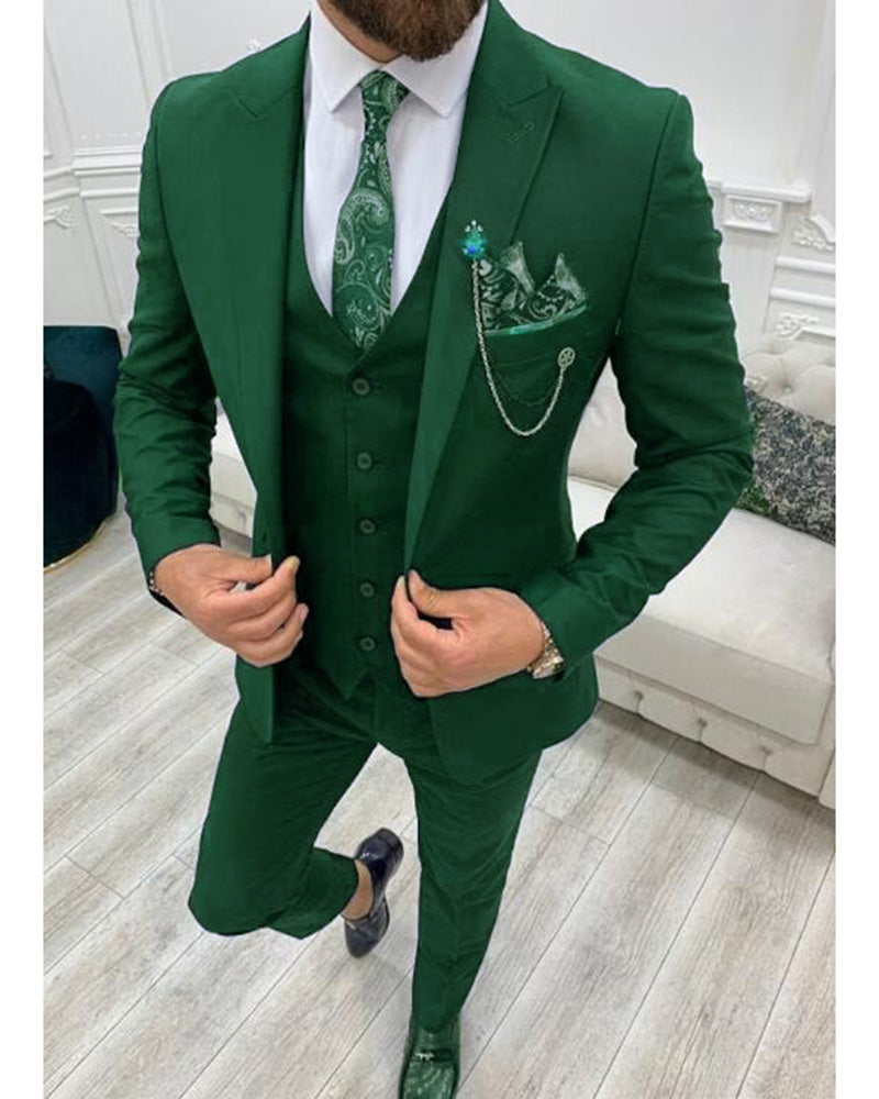 Costume vert bouteille pour homme 3 pièces veste + gilet + pantalon CB34125