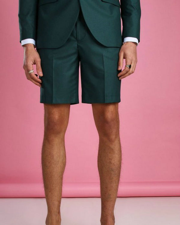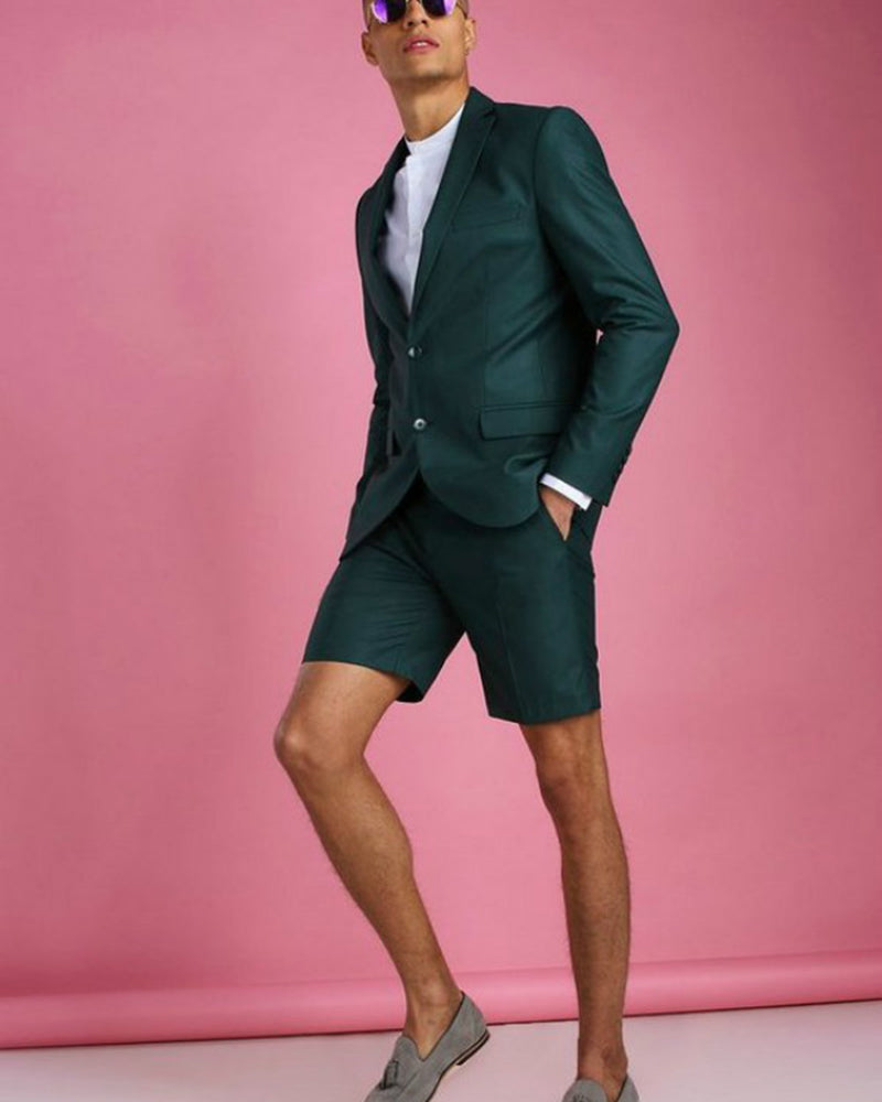 Costumes de mariage de plage vert foncé pantalons courts 2 pièces costumes blazer pour hommes, costumes décontractés CB0803
