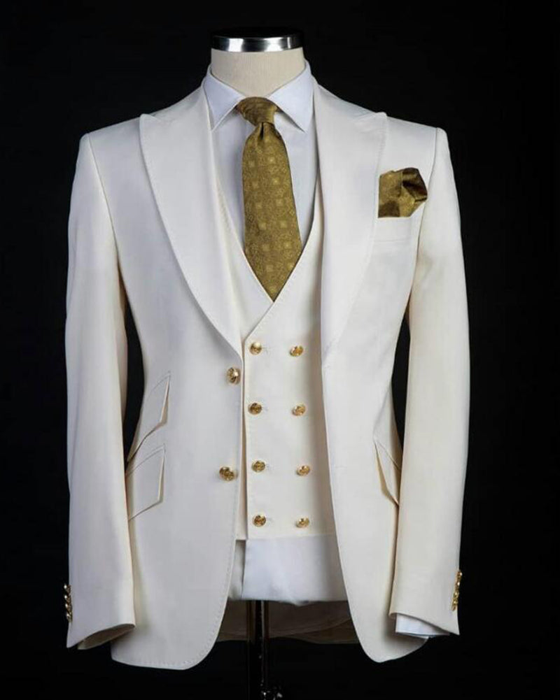 Costume de marié ivoire pour homme 3 pièces (veste + pantalon + gilet)