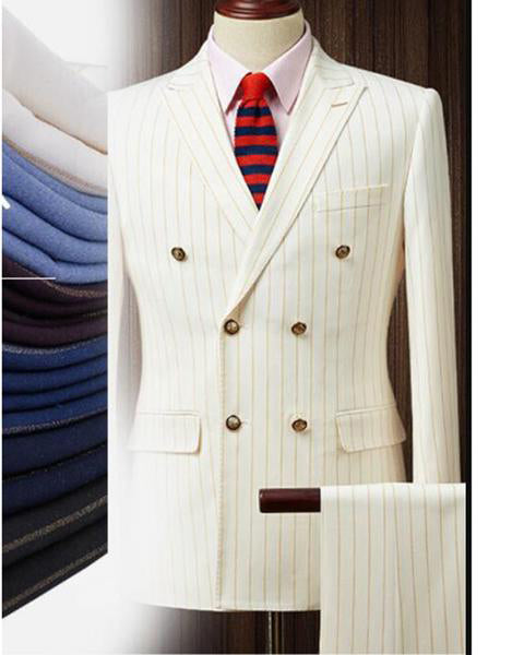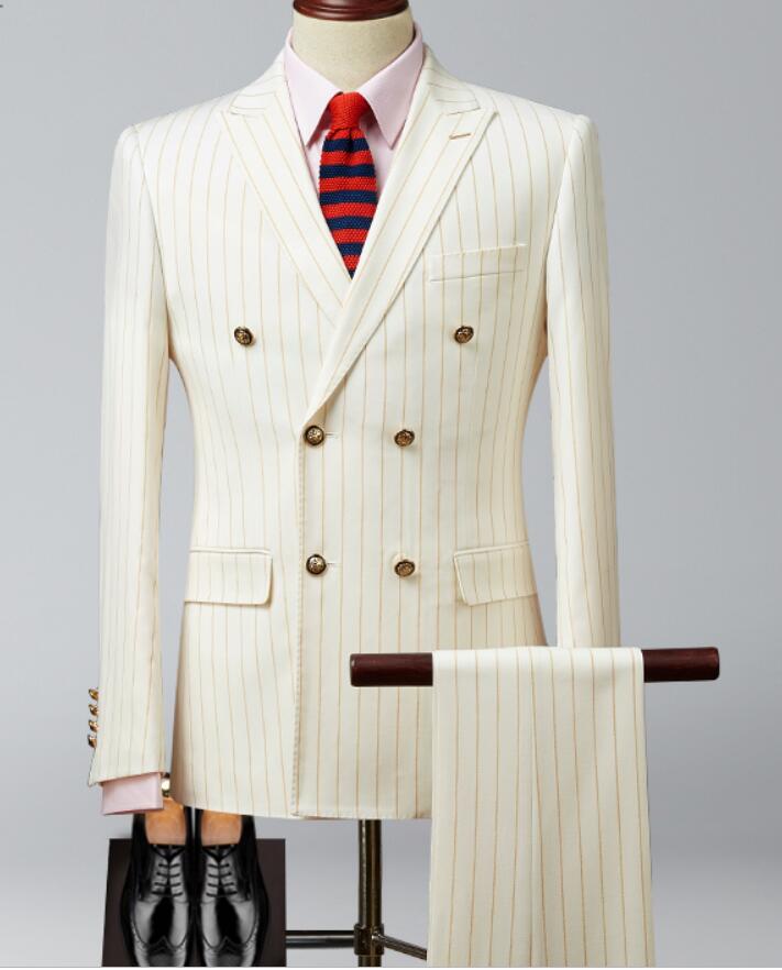 Costume de mariage pour homme à rayures beiges à revers croisé et à revers pointus pour homme 2 pièces (veste + pantalon)