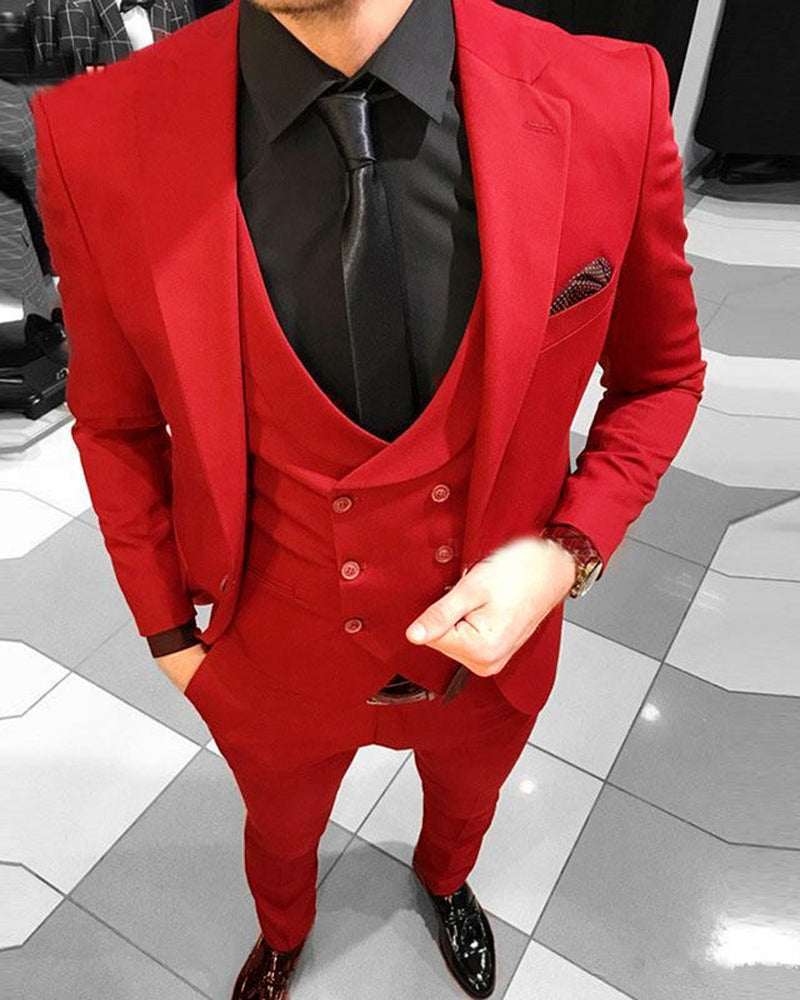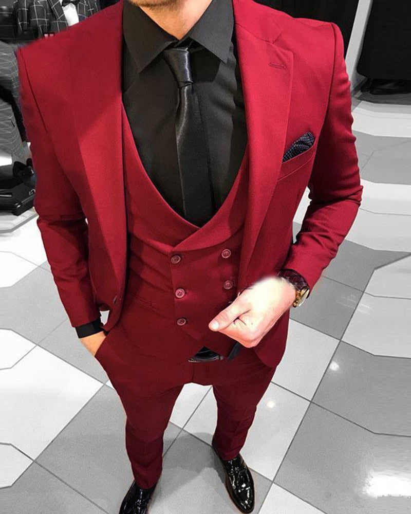 Costume 3 pièces rouge pour homme, coupe slim, avec un bouton, blazer, tenue de marié pour bal/fête/mariage CB10110