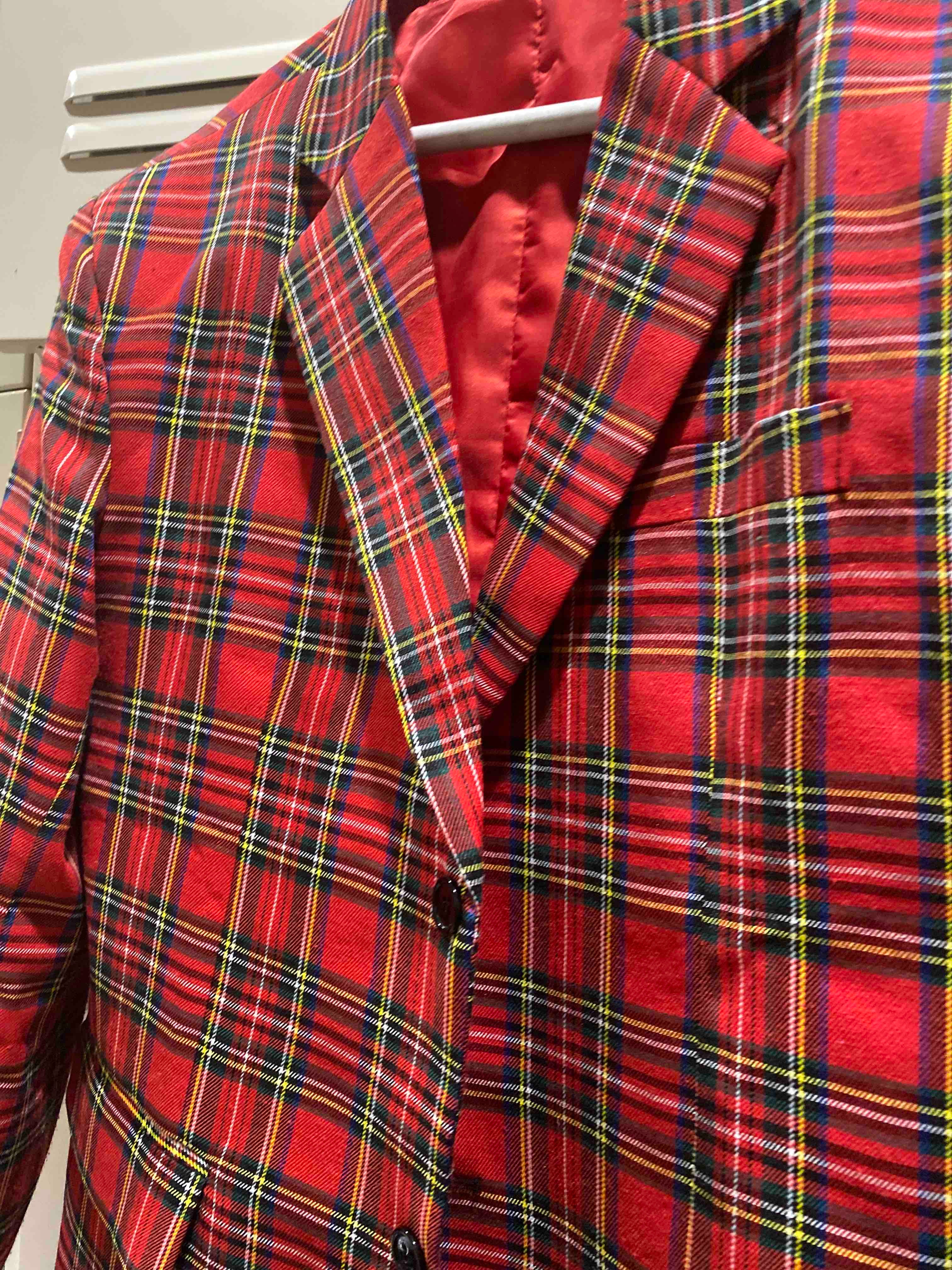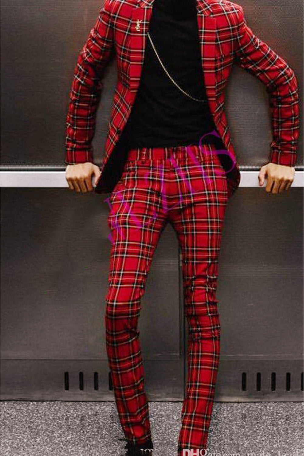 Costume homme 2 pièces coupe slim à carreaux rouges pour mariage veste blazer CB01224