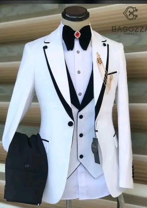 Costume de smoking 3 pièces pour homme avec bordure noire et ivoire CB3919