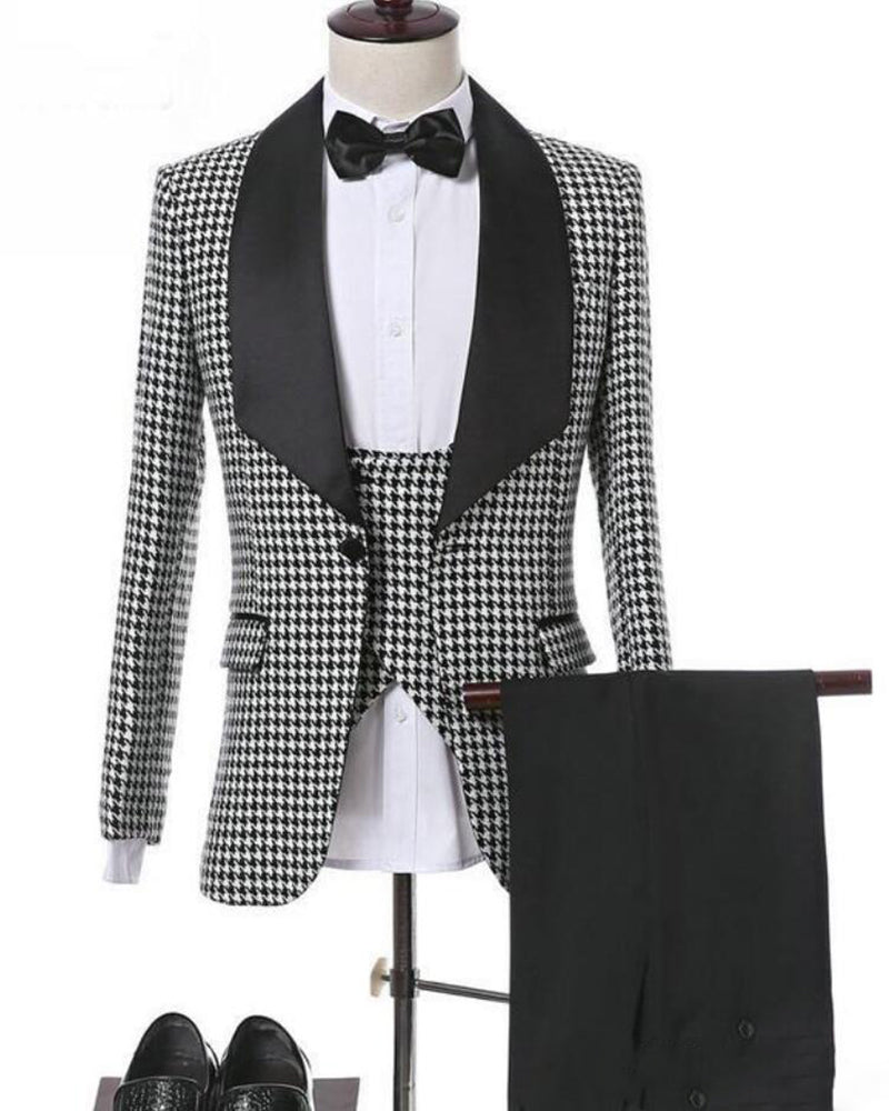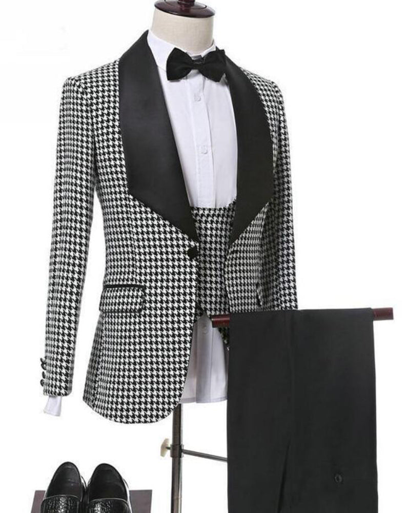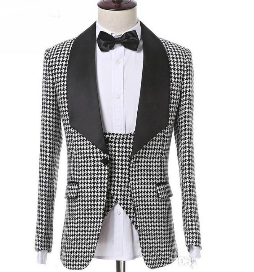Smoking de marié pied-de-poule Blazer de garçons d'honneur Excellent costume de soirée de bal formel pour hommes Personnaliser 4 pièces (veste + pantalon + cravate + gilet)
