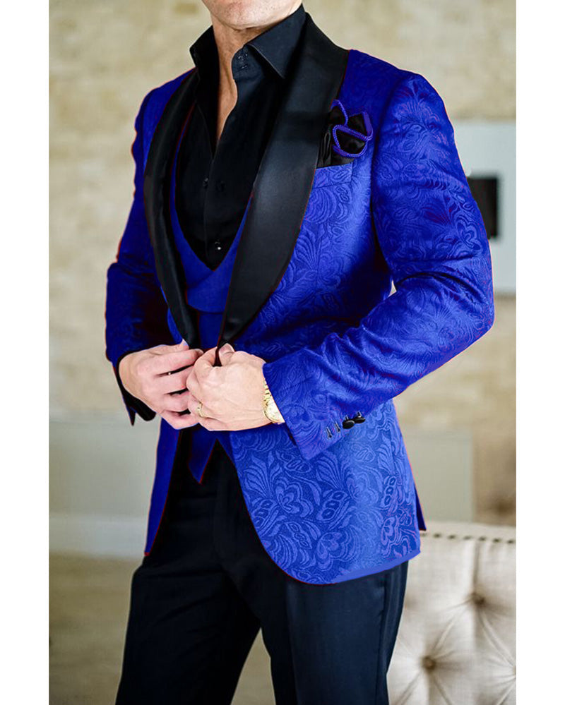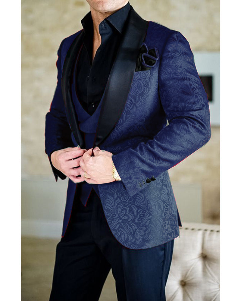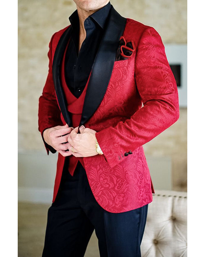 Costume de mariage en jacquard rouge/bleu/bleu marine smoking de marié 3 pièces (veste + gilet + pantalon)