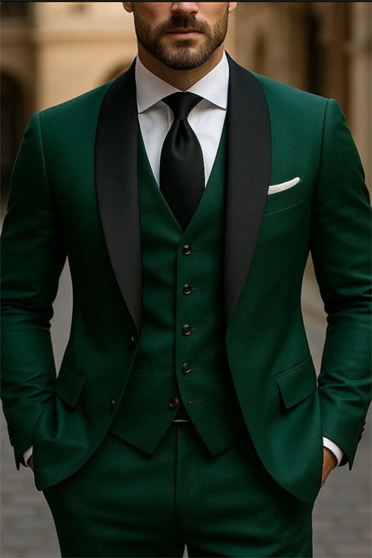 Sleek Shawl Lapel Hunter Green Tuxedo Three Pieces for Marriage CS730