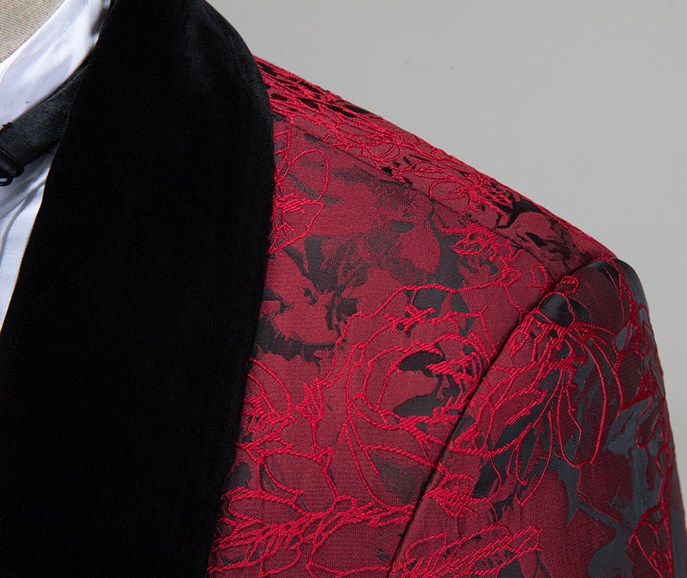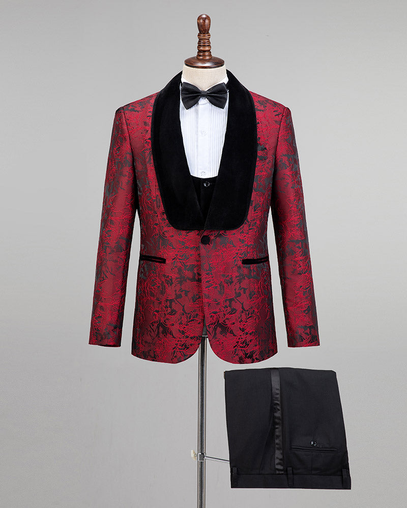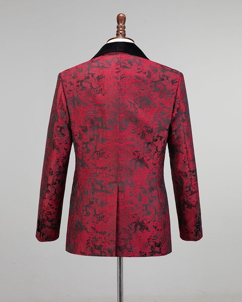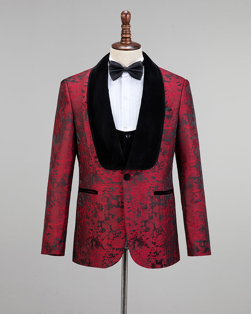 Classyby Bordeaux Jacquard Noir Hommes Costumes Garçons D'honneur Veste Velours Châle Revers Robe De Mariée Costumes 3 Pièces CB0523