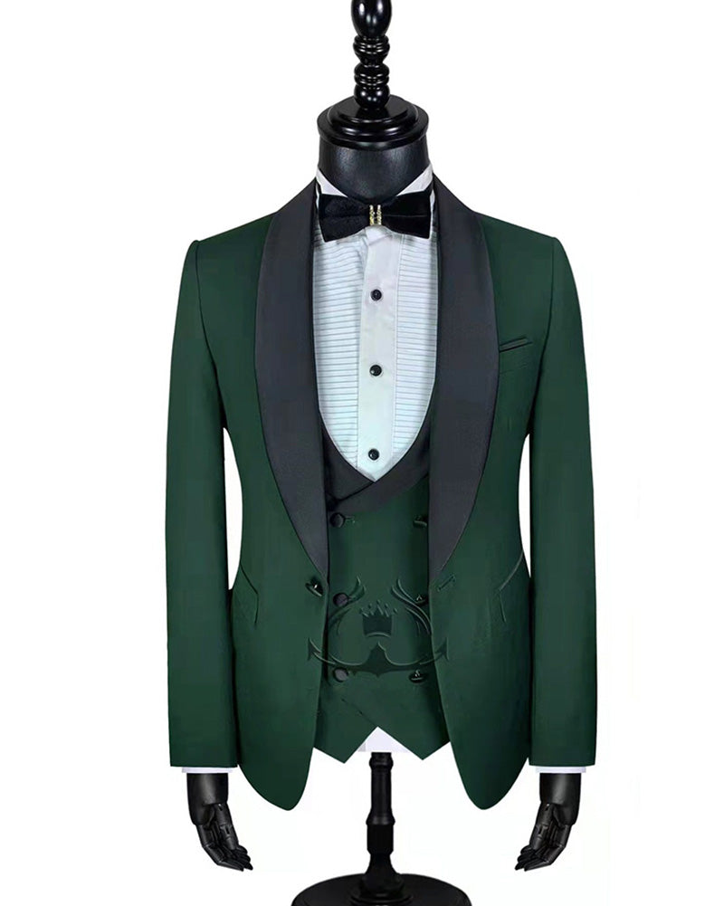 Costumes de smoking de mariage vert foncé pour hommes, costumes de bal 3 pièces Slim Fit pour l'obtention du diplôme (veste + gilet + pantalon) CB2819
