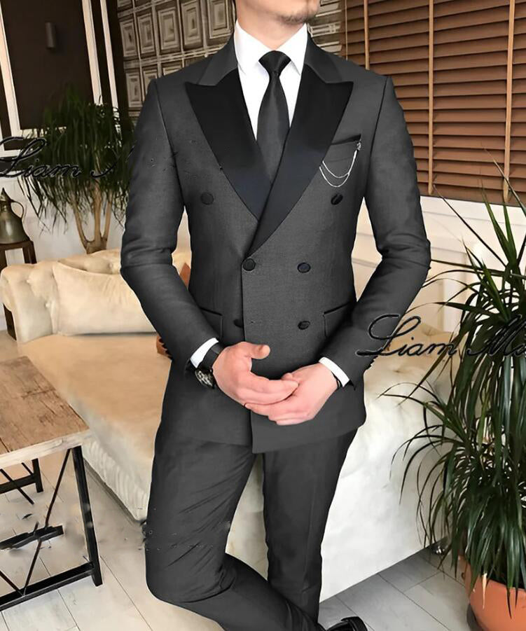Smoking croisé noir 2 pièces pour homme, tenue de soirée personnalisée, élégant, CS4710