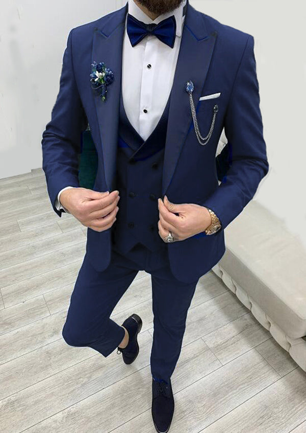 Smoking de mariage élégant bleu marine pour homme 3 pièces revers en pointe CS4318