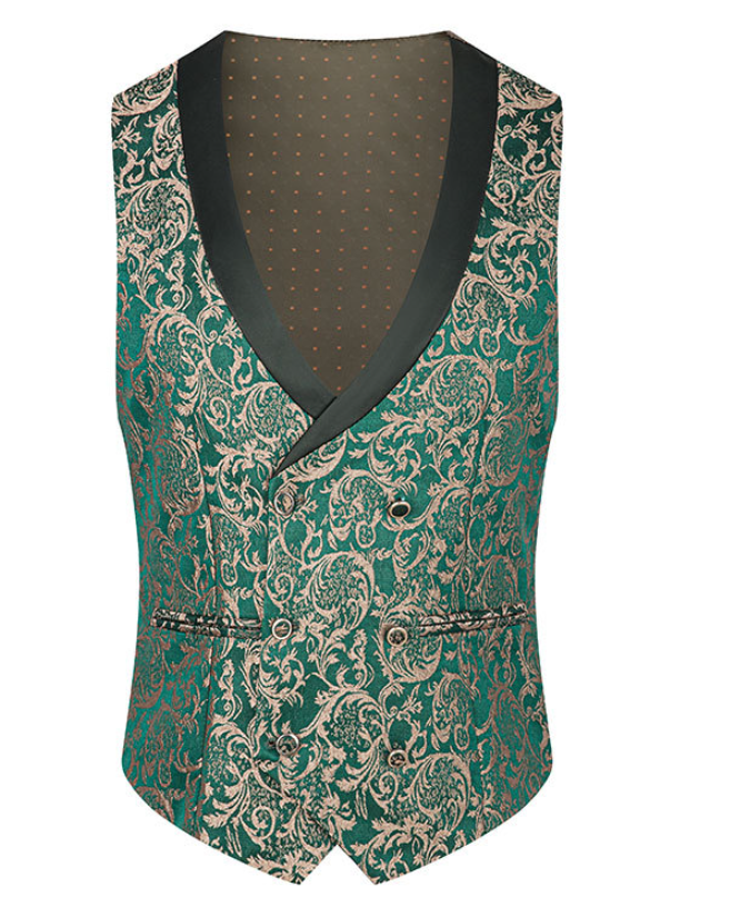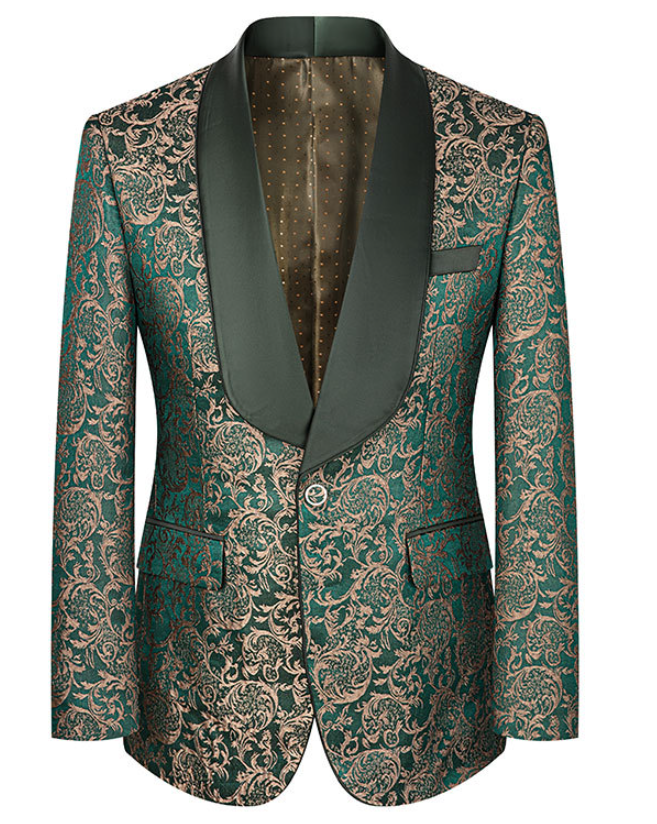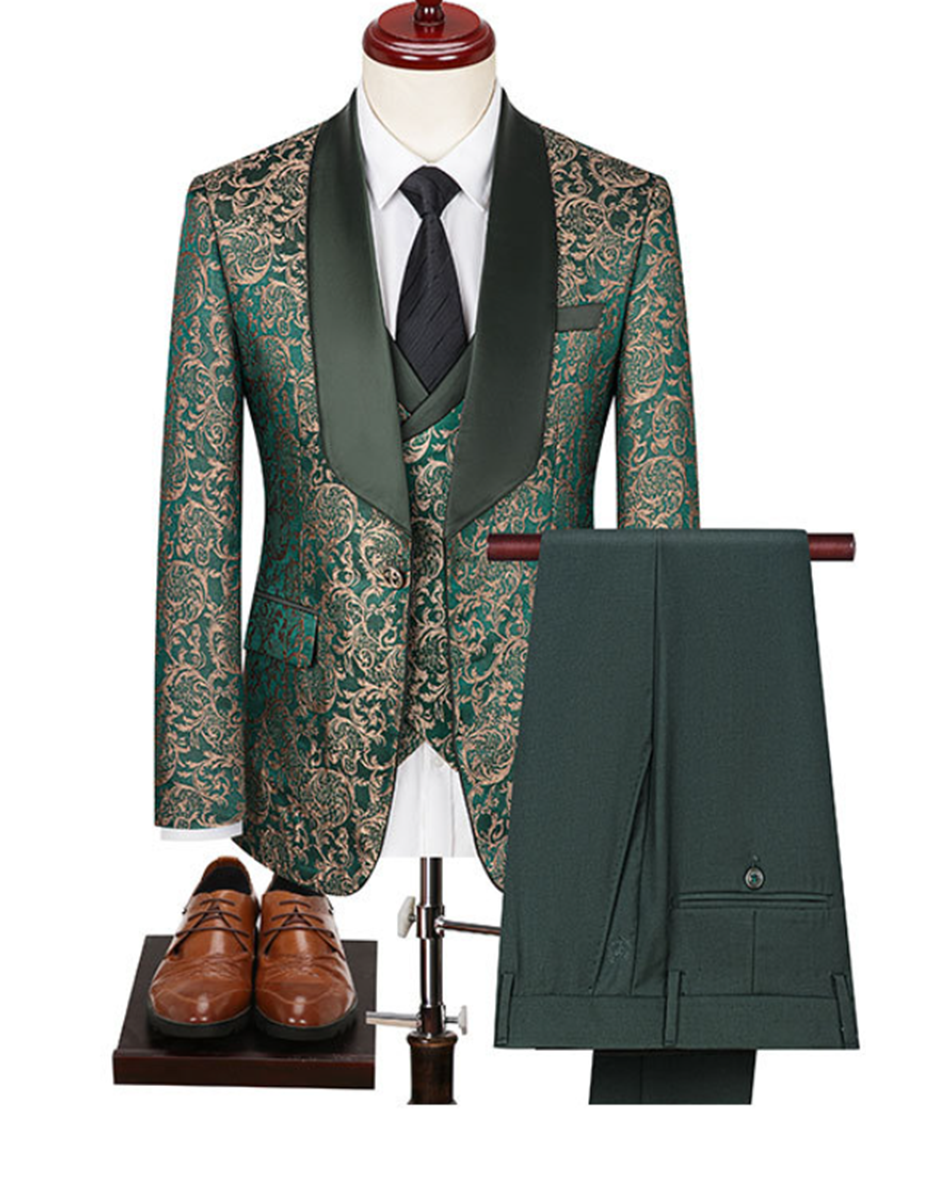In Stock Floral Pattern Jacqaurd Green and Gold Mens Tuxedo for Wedding/Prom Dinner Party Jacket +vest +Pants CS56153