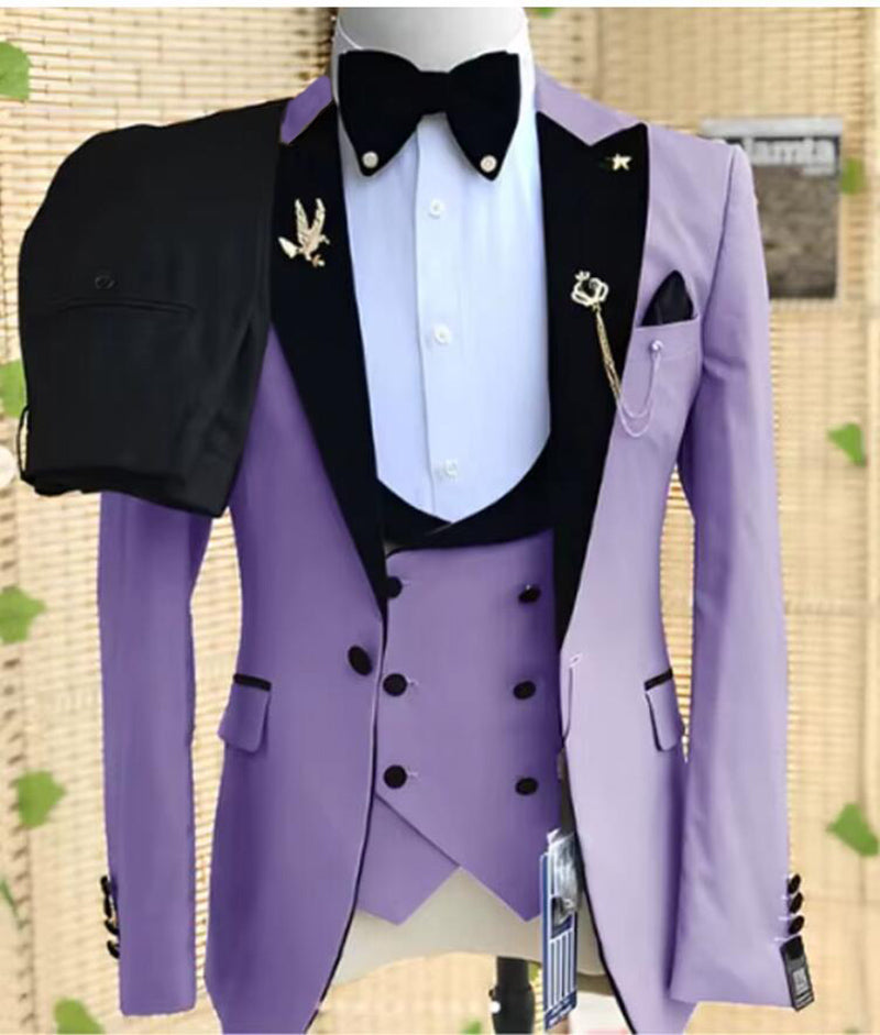 Costume de mariage/smoking de bal lilas violet clair pour hommes 3 pièces blazer + gilet + pantalon CS5114