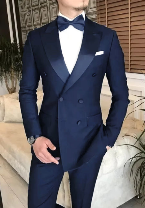 Smoking de mariage croisé bleu marine 2 pièces veste + pantalon CS5213