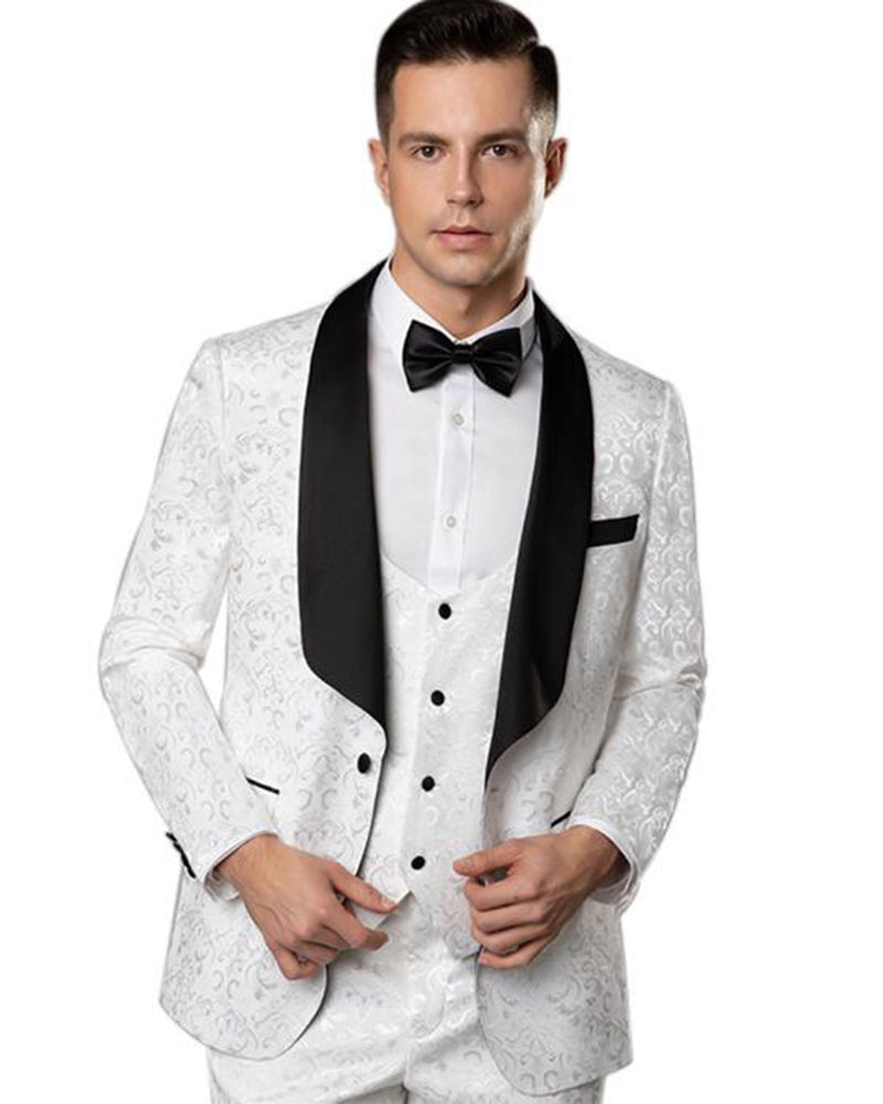 Nouveaux costumes de marié blancs à un bouton, robe de mariée, smoking pour hommes 3 pièces (veste + gilet + pantalon)