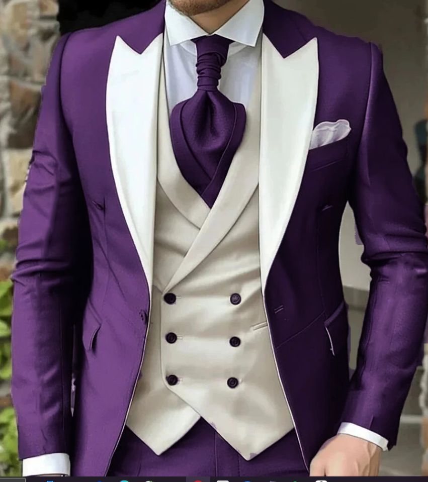 Purple /Ivory Mens 3 Piece Slim Fit Suit Wedding Prom Tuxedo Suit for Men Formal Business Elegant Suits