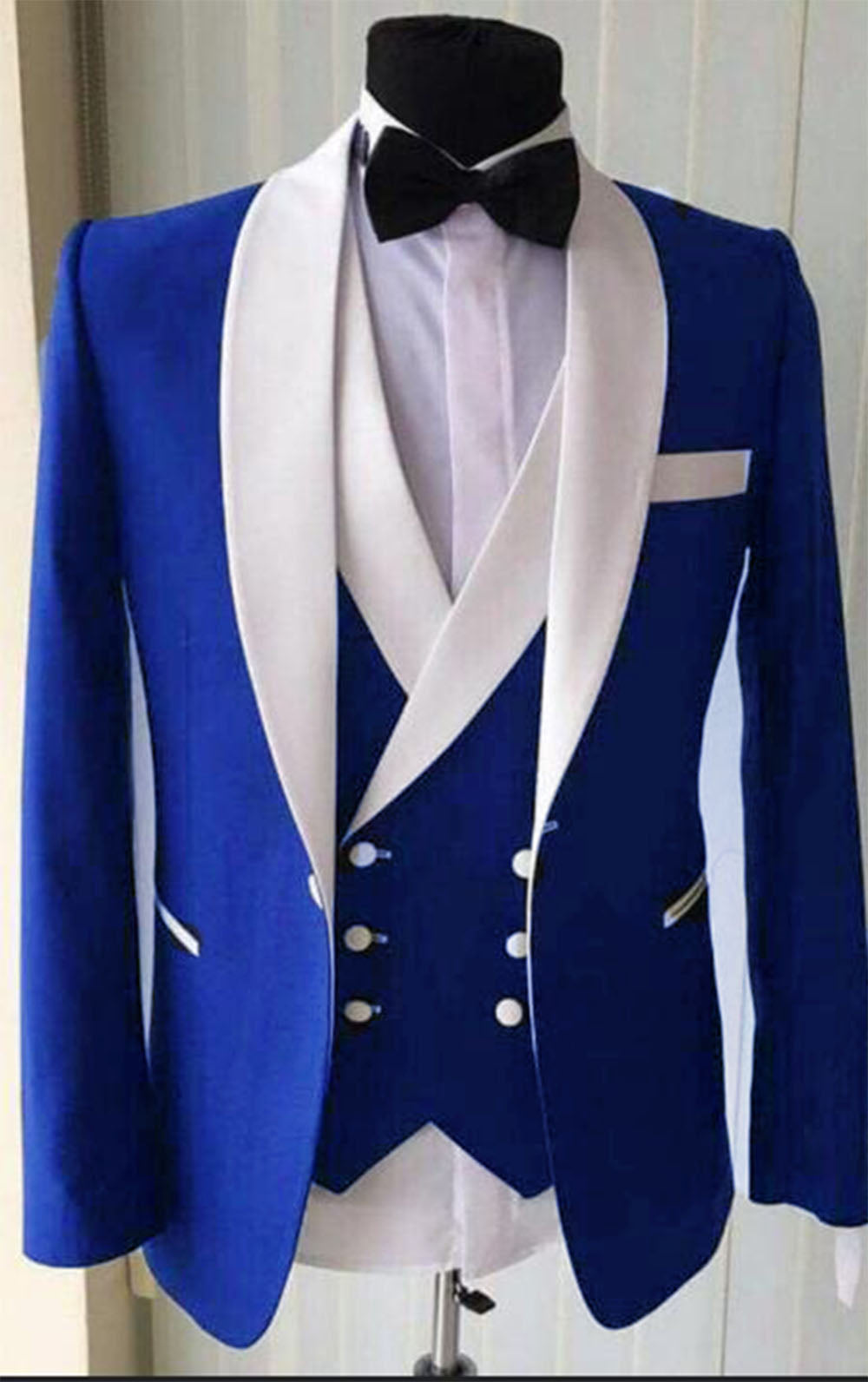 Costume de smoking de mariage bleu royal pour homme avec revers blanc 3 pièces CB2375