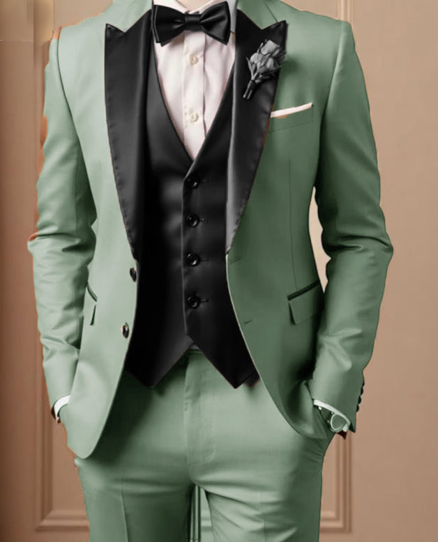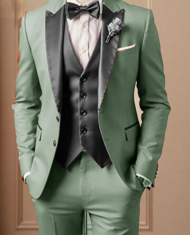 Sage Green and Dark Gray Men Wedding Tuxedo Suits 3 Pieces CS624