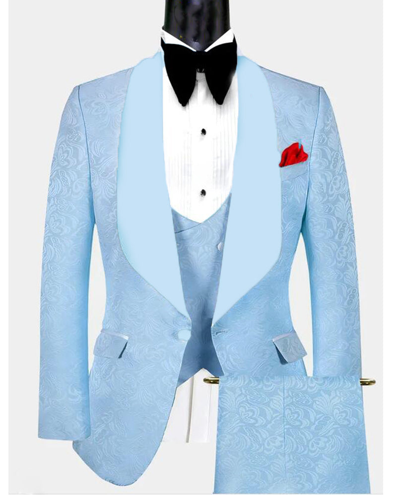 Smoking de mariage bleu ciel clair à motif jacquard sur mesure 3 pièces CB3318