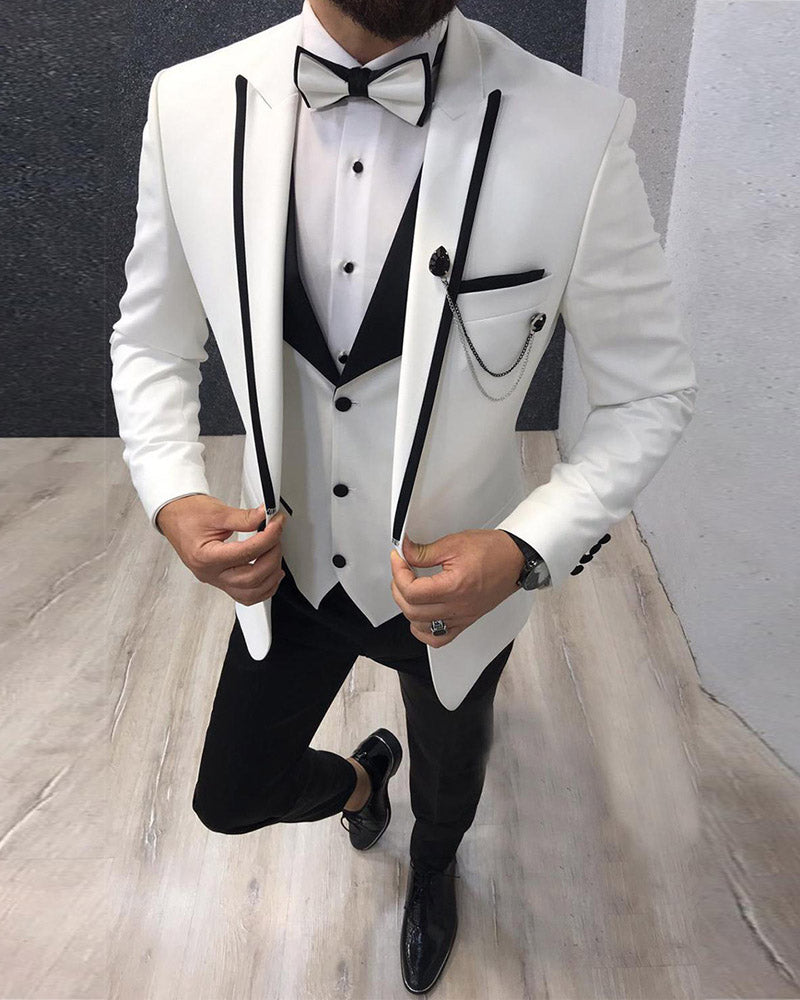 Smoking blanc pour homme, costume de mariage, 3 pièces, CB3620