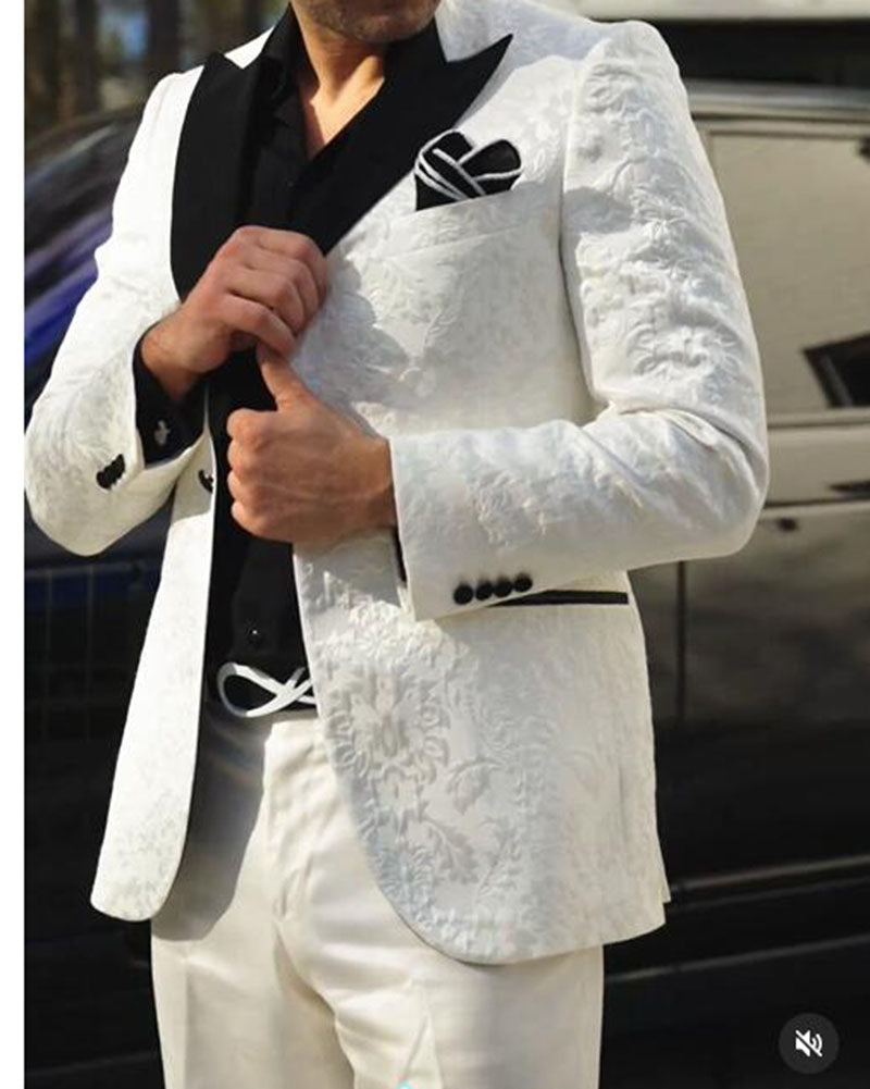 Smoking de mariage ivoire à motif jacquard 2 pièces CB2379