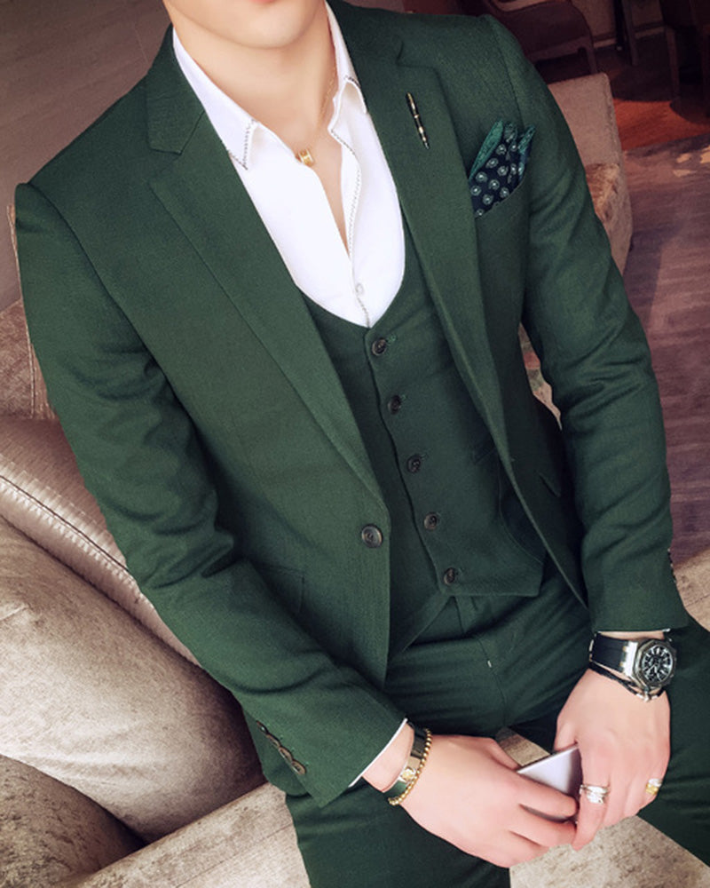 Costumes Blazer Homme Vert Foncé Slim 3 Pièces Ensembles Costumes De Fête De Créateur Élégant Italien (Veste + Pantalon + Gilet) CB544