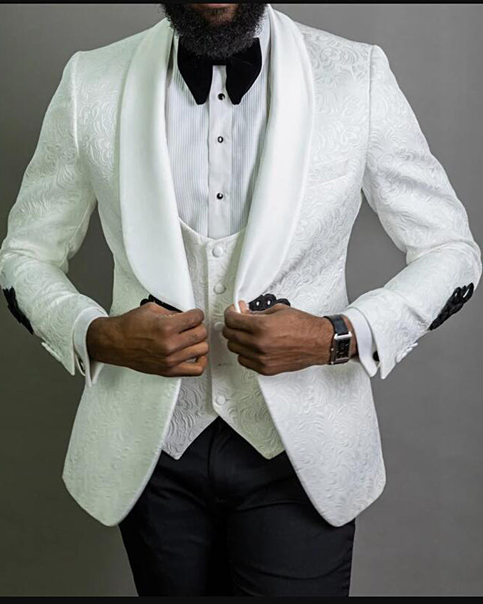 Costumes de mariage à motifs floraux pour hommes avec pantalon noir 3 pièces Slim Fit Tuxedos de marié châle revers veste de mode africaine gilet 2024