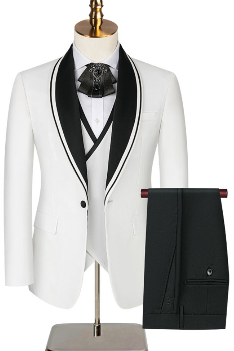 Groom Wedding Party black and White Tuxedo 3 Pieces Shwal Lapel Suits CS5611