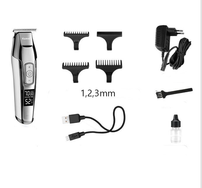 Fonctionnalité : Tondeuse à cheveux entièrement en métal, outil de barbier professionnel ou à usage domestique, batterie au lithium 1400 mAh, charge rapide et puissance élevée. Emballage inclus : 1 x tondeuse à cheveux, 1 x housse de protection, 1 x chargeur, 1 x brosse de nettoyage, 1 x manuel, 1 x boîte d'origine (deux options)