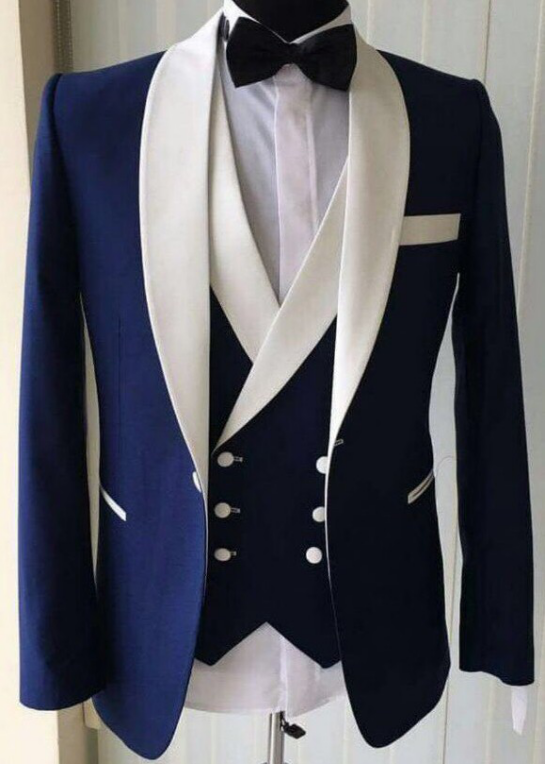 Costume de smoking de mariage bleu marine coupe slim pour homme, tenue de soirée formelle, tenue de garçon d'honneur, 3 pièces (veste + pantalon + gilet)