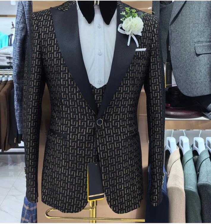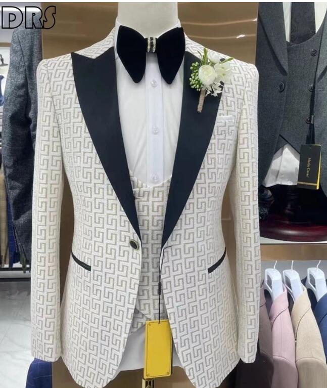 Ensemble de costume formel pour hommes Slim Fit 3 pièces Veste Gilet Pantalon Costumes intelligents pour hommes Revers cranté Bouton unique Smoking