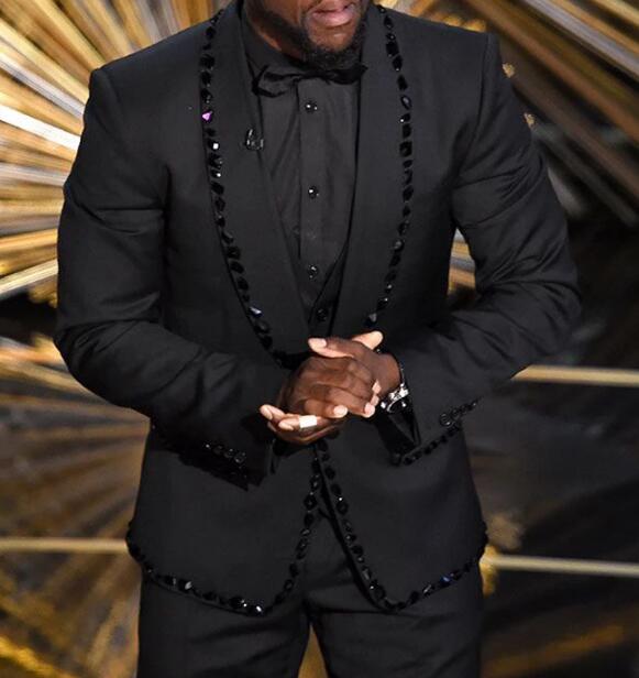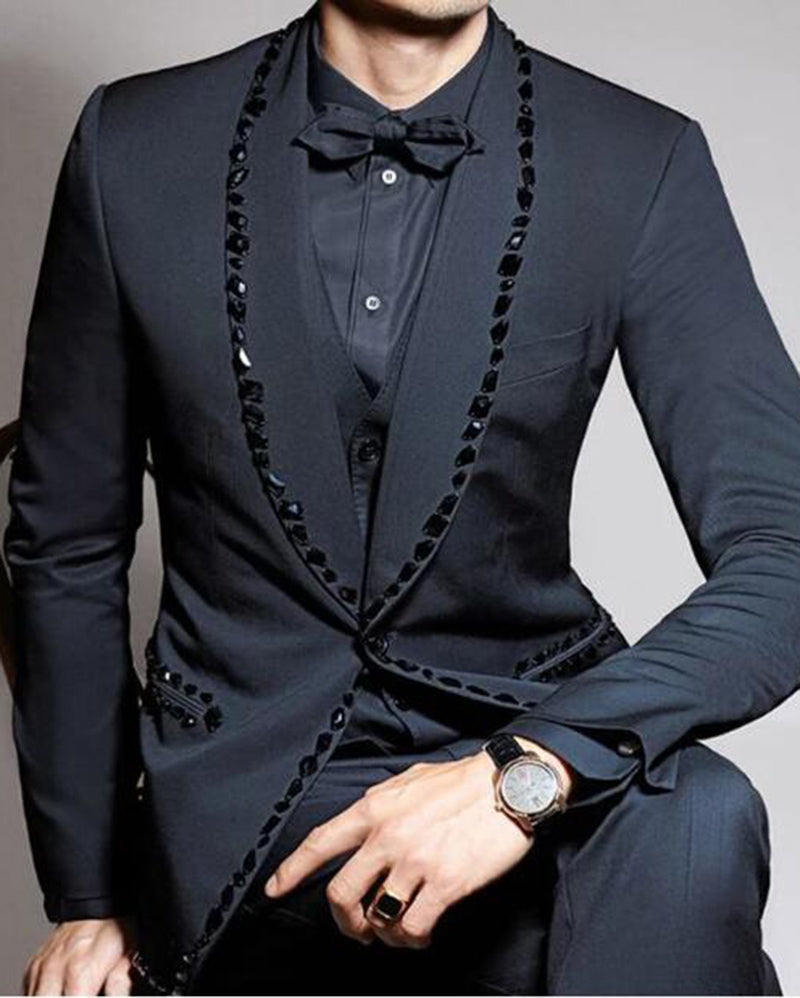 Black Men's Formal Dress Suits Tuxedo with Beading Trim , singer Stage suit,musical performance Costume 3 Pieces (Jacket +pants+vest)CB01204